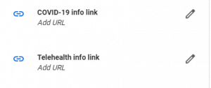 Businesses that have new landing pages or call-to-actions specific for COVID-19 just have to navigate to the “INFO” panel on Google My Businesses and edit the form field. These links can appear on your listing in local results when added. They will look like this under the editor: