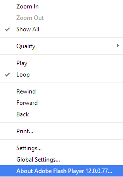 2.) If you suspect that an element of your site is flash try right clicking on it and see what pops up. If at the bottom of the options there is a line that reads “About Adobe Flash Player”, you are looking at a flash element.