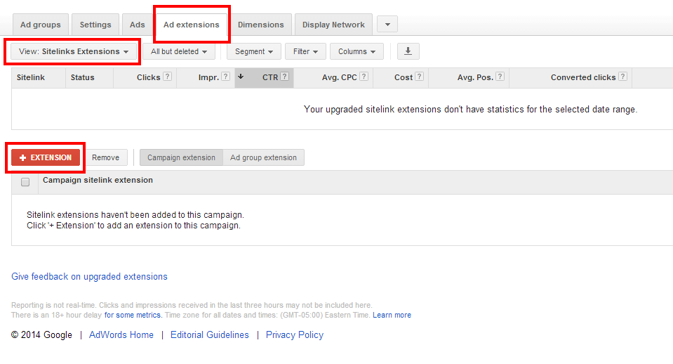 - Click on the tab called “Ad Extensions”