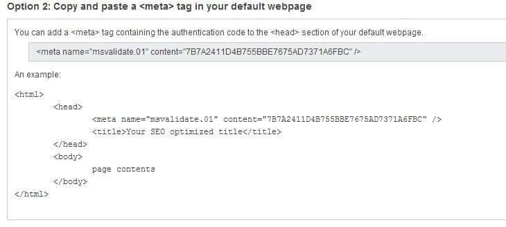 The second option is to add a <meta> tag containing the authentication code in the header of your website.